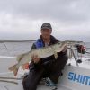 Under dom fem långa dagarna med VIP-gästerna så vart det nån timme fiske nu och då men mest låg vi stand-by och väntade på order . Sista dan blåste det upp så det vart lite guppigt att ligga vid moderskeppet. Då åkte Peter och jag in i lä och väntade....