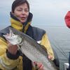 Igår var Peter och jag ut sista dan med LG, 7 personer. Och för tredje dan ett nytt fiskeområde. Till en början var det lite småtrögt men Mikko i min båt överraskade med en steelhead på 1,5 kg tagen på en silverfärgad Kuusamo Professor. Efter lunch vart det bättre fart...