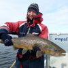 Nu är vårfisket igång, och årets första havsöring från båt är landad för vår del. Det var idag när jag var ut med Jonatan och hans kompis Marcus på en mitt i dagen tur. Efter ca en timmes fiske har Jonatan ett litet nafs och kastet efter så följer den...