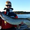 Idag har både David och jag varit ut med grupper på gäddfiske. David hade nya gäster i form av höstlovsfirande familjen Bertlid. Det var pappa Johan, mamma Cecilia samt sönerna Arvid och Bosse 7 resp 5 år gamla. Det blev en heldag ivrigt fiske, och speciellt Johan var ruskigt laddad....