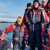 Efter fredagens storguidning med 23 gäster fördelat på 5 båtar och guider så var det dags för nya grupper dan efter. Johan tog hand om Klaus Pärnänen från Mariehamns Tryckeri. Han hade bjudit in tre fiskeivriga ryska gäster, och dom började dagen med en längre förflyttning mot det tilltänkta fiskeområdet....