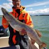 Mellersta sonen Jonatan har varit ut på flera fiskepass sista tiden. Både med Nymarn och med kompisars båtar. Efterleksfiske på gädda är det som gällt. Och det har blivit en och annan bit. Den största på 7 kg, och den var även märkt. Så riktigt skoj. Märktes i juni 2011...
