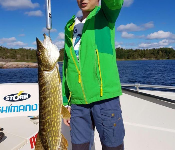 Idag hade jag lite mer långväga gäster i båten. Det var vitryske Egor med son Daniel som ville ut på en kortare tur runt stugan dom hyrt för två veckor. Passade bra för mig då området brukar leverera helt okej med sommargädda. Och visst var dom på plats. Daniel drar...