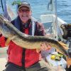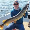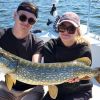 Trogna återbesökare i båten ännu en dag. Nu var det Stefan Pettersson och sonen Linus som kom för fjärde gången tillsammans. Vi har haft lite oflyt med förutsättningarna alla gånger egentligen. Men dom har älskat att va här och utmana gäddorna, och uppskattat varje fisk och hugg.Nu blev det överlägset...