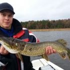 Men sen efter lunch så börjar det hända grejer. Vips vips så får vi igång dom, och nu smäller det på gädda på gädda. Betes- och färgval är A och O denna dag i takt med att vädret ändrar hela tiden. Men killarna är på tårna, och vi lyckas knäcka koden. Totalt blir det 43 gäddor. Flest till Arne som fiskar som i trance mellan varven. Han drar hela 16 stycken själv. Det blir ett gäng mellan 3-4 kg på eftermiddagen men Erik tronar på toppen tills imorgon då dom är ute med oss igen. Då har vi tre grupper på fiske. Nya rapporter följer.