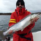 Efter en spektakulär fajt så kan jag lyfta in en praktfisk. Det visar sig va nytt rekord för Johan då öringen väger fina 3,9 kg. Efter lite glädjeskrik och foton så får den sin frihet igen. Det tar inte många kast innan vi har två öringar till. Johan fortsätter med en på 1,3 kg, och Richard vill inte va sämre han. Igen är det en stor öring i perfekt kondition som huggit. Den visar sig väga 3,7 kg. Också det nytt rekord för Richard.