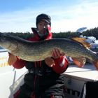 Men om vi tar det från början så blev faktiskt första timmarna en besvikelse. Stället vi tänkte fiska på var fyllt av is, så Patrik fick ta till plan B vilket visade sig bli ett lyckoställe. Patrik kniper några gäddor innan det bugar till bra i spöet för mig. Efter en stund kan vi lyfta in en fin madam på 10,2 kg fördelat på 112 cm. Den slukade en naturtrogen Real Eel. Det var över 10 år sedan jag fick en 10:a senast, och Patte är minst lika glad som jag är.