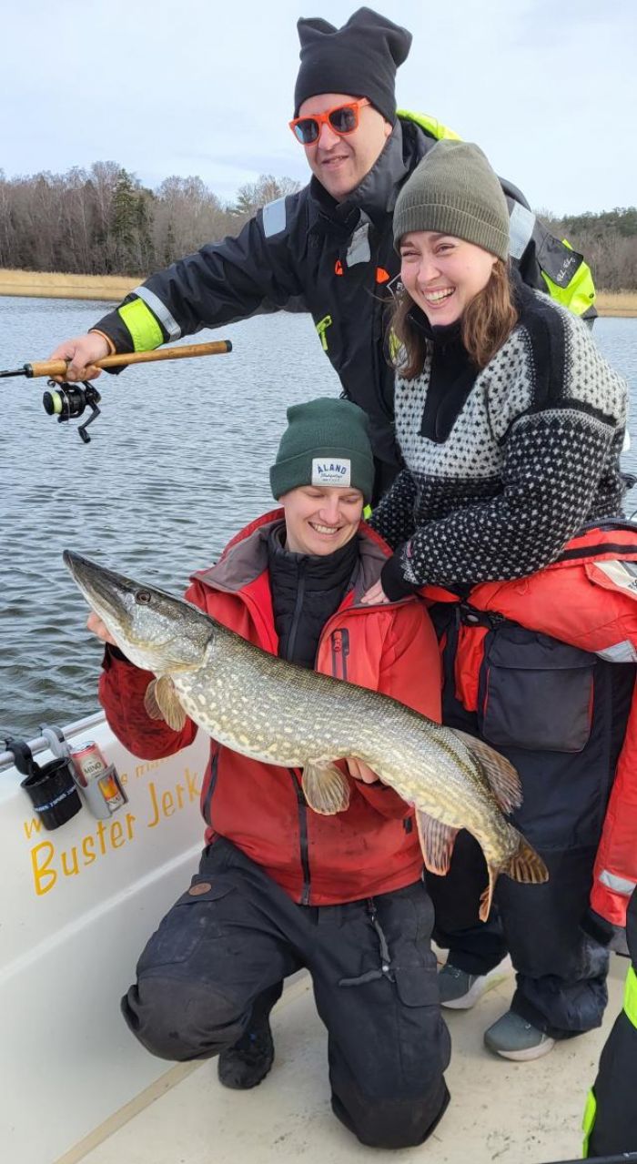 Sen nästa tur blev också med Johan, och nu var det ännu svårare. Runt 1 grad i vattnet, och ett fåtal gäddor upp bara. Topp just över 4 kg. Men sen igår så brakade de loss lite. Lättare med många pers i båten, och variation på beten, färger och teknik. Med var äldsta sönerna Elias och Jonti samt Jontis flickvän Sara och min brorsa Isak. Underbart att få ha alla dom med sig på en dags fiske.