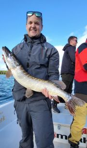 Gårdagens gäster var nya och trevliga bekantskaper i form av Johan Tysklind med vännerna Erik och Rikard. Fint väder hela dan. Och gäddor som verkligen var på hugget under förmiddan. För Johan drog en på första kastet. Och även Erik och Rikard fick sina första gäddor inom några minuter. För Rikard till och med ett nytt rekord direkt. Den gäddan vägde 3,3 kg.