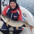 Jonatan har varit ut på gäddjakt igen, senast i söndags tillsammans med Mats. Vädret var allt annat än trevligt men dom fick belöning för idogt nötande när Mats kunde håva en fin 7,8 kilos åt Jonatan. Den var 107 cm lång, och tog på en Westin Swim. Det var Jonatans tredjestörsta för i år. Den största tog han på ismete i vintras, och den vägde 10,4 kg.
