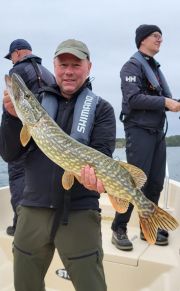 Jag hämtade upp dom vid stugan och sen bar det iväg mot spotsen för dagen. Första nyper Peter, och tar inte alltför länge innan alla har öppnat gäddkontot. Till exempel drar Claes tre gäddor på tre kast.