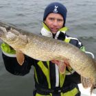 Jag får även bra på Storms Suspending Shad. Bland annat en på 5 kg lite senare under dan. Och Jonatan avslutar med att dra en märkt gädda på 3,8 kg. Det var tredje gången den var upp. Maj-11, maj-12 och så nu. Ganska samma längd alla gånger - 83 cm. Totalt vart det 28 gäddor denna blöta men härliga dag. 10 av gäddorna vägde över 3,5 kg. Kanonbra medelvikt.