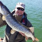 Martina verkade inte ha några problem med gäddorna. Hon fiskade storstilat, och drog 10 gäddor själv. Plus nytt PB den här dan också. Den gäddan vägde 4,2 kg. Sen fick hon en på 4,1 kg också. Och det var dom största för dagen. Så tyvärr sprack sviten med plus 5-kilos gäddor alla dagar nu på den sjunde dagen. Men en bra svit var det. Ett stort tack från David och mig. Det var tre mycket trevliga dagar.