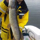 Några timmar fiske innan lunchen, och det är jämnt mellan båtarna. Inga jättar upp hittills. Snacket går på högvarv och psykningarna haglar. Sen mellan lunchen och kaffepausen så börjar det hända grejer. I Thomas båt drar Robin en på 4,9 kg, och kopplar greppet om vandringspokalen. Sture i Johans båt är nära med sitt nya rekord på 4,6 kg plus att även Robert persar i den båten. Hans gädda väger 4,1 kg.