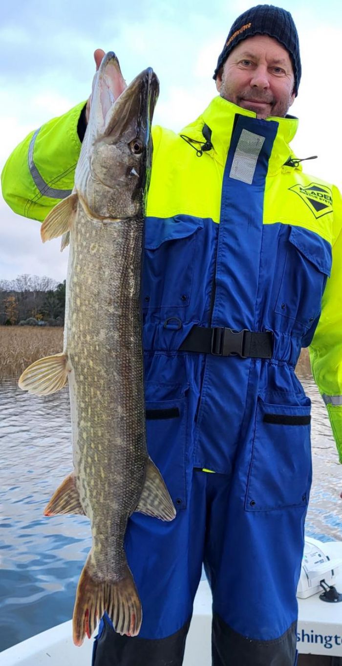 Sista timmarna körde vi bara grunt, och då hände de mer. Men dom var svåra att kroka, riktigt försiktiga. Johan fixade dock biffen och drog både en 99a och en 90a den sista timmen. Vikt på den längsta var 5,3 kg. Totalt 21 gäddor upp denna dag. Tackar och bockar.