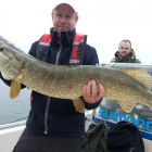 Rekord blev det även för Nicke som persade med en gädda på 3,7 kg. Men det blev inte hans största fisk för dagen. Han fick nämligen en mycket fet bonusgös på hela 4,4 kg. Den fick snabbt simma tillbaka igen. Dennis drog en abborre på 760 gram plus att det kom en stor braxen på 2 kg. Så en artrik dag blev det. Och innan dan var slut hela 48 gäddor. Förutom dom stora redan nämnda så kom det gäddor på 5,8 och två på 5,5 kg samt 7 st till över 4 kg också. Riktigt bra medelvikt alltså. På ett ställe hade vi 10 gäddor med en medelvikt på över 5kg. Tack grabbar för ännu en underbar dag i fiskeparadiset.