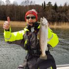 Sen fortsätter det med några kontakter, och efter en timme till så smäller det på en för mig. Rullar, bökar och kämpar så där härligt innan den får ge sig och Mats kan håva den. 1,3 kg vägde den, och efter en liten fotosession simmar den piggt tillbaka igen. Några kast senare är det en till som biter i Gladsaxen. Men den går vinnande ur striden och lösgör sig i ett fint luftsprång. Efter det blir det inga fler kontakter. Men vi är såklart mer än nöjda. Var ju till och med lite vår i luften den här dan.