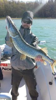 Sen igår lördag tog vi beslutet att flytta dom med taxi till ett helt annat område, och då var det David och Johan Danielsson som tog hand om dom. Halvdagstur, och nu var det helt annat drag i fisket. I Johans båt börjar dom med åtta snabba gäddor där den största vägde 4,5 kg tagen på en Slider. Som även var dagens bete. Första gången i vår som den dominerar. Sen ramlade det in fisk resten av passet, och det blev totalt 26 gäddor för det här glada gänget. I Davids båt hade dom också en riktig bumling som följde ända fram till båten.