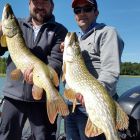 Svårt till en början, har varit så flera dagar på sistone. Men på eftermiddagen började gäddorna piggna i, och då vart det bonanza mellan varven. Ett suveränt dubbelhugg på 6,3 och 5,8 kg till Casper och Daniel. För Daniel var det nytt rekord. Han tog även flest gäddor med 8 noteringar. Några kast senare höjer Patrik toppnoteringen till 7,0 kg med en dam på 95 cm. Den tog på en Westin Swim.