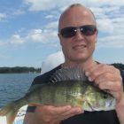 En försenad rapport från torsdagens fiske. Det var Janne Landström med två kollegor som bokat in en halvdag fiske. Vädret var absolut strålande med noll vind och en stor sol som gassade från en klarblå himmel. Nu har sommarvärmen kommit. I vattnet var det kring 20 grader. Mitt förslag var jiggfiske med ul-utrustning, och som tur var så var gästerna med på det direkt. Så även abborrarna.