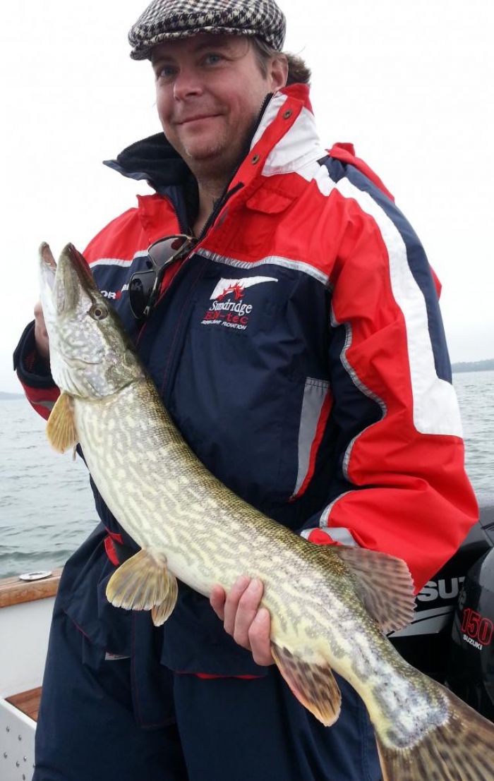 Oj oj vilket fiske det har varit på sistone. Dom senaste sju turerna har alla slutat mellan 37-68 gäddor per dag. Och alla gångerna på olika områden. Otroligt bra fiske antalsmässigt alltså. Men gäddorna har varit väldigt selektiva i betesväg och koncentrerade till vissa platser. Har man träffat rätt så har det blivit mängder. Och ett sanslöst bra fiske. Som i fredags när jag var ut med trogne återbesökaren Thomas Bratt som senast var här i juni med kunder och körde efterleksfiske med oss. Då hade vi superfiske med 41 upp och en topp på 8,5 kg. Hela 8 gäddor vägde över 5 kg den turen. Året före hade vi även grymt fiske med en 8,8 kilos på topp och många stora.