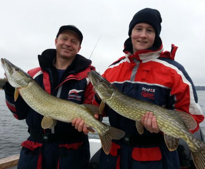 Sen fortsatte det fina fisket efter lunchen, och det var helt klart skeddragen som levererade bäst den här dan. Beten som varit outstanding tidigare turer gav knappt ett pet nu. Som det kan ändra. Flest blev det till Simon som drog 15 st. Största till Janne som hade två kring 3,5 kg som toppar. Och alla killarna fick mycket fisk samt en dag dom sent ska glömma tror jag. Tack ska ni ha.