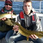 Där blir det ytterligare ett gäng gäddor, och innan tre timmars turen är slut så har det blivit 8 gäddor och 4 abborrar som bet över jerkbetena. Kvällens största gädda kommer i Johan Danielssons båt, och det är en mycket fin fisk på 105 cm. Den väger in på 7,75 kg, och betet den tog på var en Salmo Slider. Grattis till både fångstman och guide.