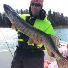 Det har varit en intensiv period nu med fiske så gott som alla dagar sedan första passet med båt. 29 guidningar har det blivit på en månad, och jag är riktigt nöjd med inledningen på säsongen. Fisket har varit bra. Ska försöka nån repa till med öring men sen blir det gädda och lite abborre för hela slanten. 5,5 kilos gäddan som vi fick verkade utlekt. Den var 95 cm lång och mager. Men överlag är gäddorna i lektagen ännu, och det brukar dröja tills 20-25 maj ungefär innan efterleksfisket sätter igång på allvar. Vattentempen har legat där ikring 5-7 grader dom sista dagarna.