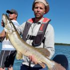 Niklas drog ganska omgående den första gäddan men sen fick killarna kämpa hårt för varje fisk. Niklas höjde bl a toppnoteringen med en på snudd 3 kg. Efter lunch började gäddorna visa sig mer och mer, och på sista timmen så vart det nästan lite race. Två trippelhugg bland annat! Och duktigt kämpastarka gäddor. Tuomo ökade lite på vikten men Niklas replikerade direkt med en på 3,3 kg. Dock var det Tuomo som fick sista ordet när han precis på slutet drog en fin bit på 4,2 kg. Han fick även flest med 12 egna noteringar. Totalt 23 gäddor avkrokade för killarna. Strålande fiskat! Imorgon fortsätter tävlingen...