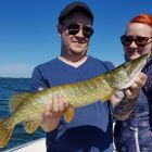 Men till slut fick vi lite vägledning. Och det skulle visa sig att det var endast gummi som gäddorna ville ha, i naturtrogna färger. Blev 12 stycken upp, och en topp på 3,3 kg till Linus. Samt massor av kontakter. Två dubbelhugg vart det, och Micke stod för en skön prestation då han drog tre gäddor på tre kast.