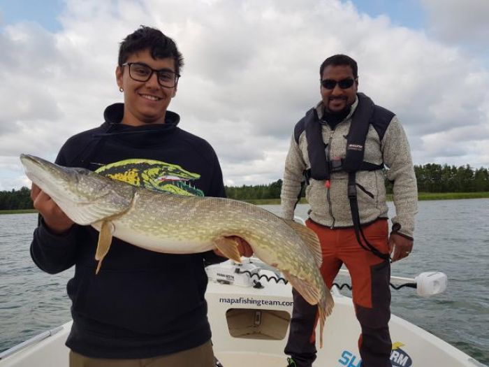 Igår var jag ut med 40-års jubilaren David samt hans son Adam och svärfar Janne. Första gången i sommar som det var svalt ute. Mulet och lite kall nordanvind. Men sen efter lunch så sprack det upp, och solen tittade fram. Det gillade både vi och dom under ytan.