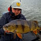 Havsöringskung till lika abborrkung blev Jonne Nylund. Undrar om det är nån som mäktat med det tidigare, att stå högst upp i två olika kategorier. Hans nya PB på havsöring lyder på 5,8 kg. Och årets största abborre vägde in på 2,1 kg vid en längd av mäktiga 53 cm. Nytt längdrekord på den.