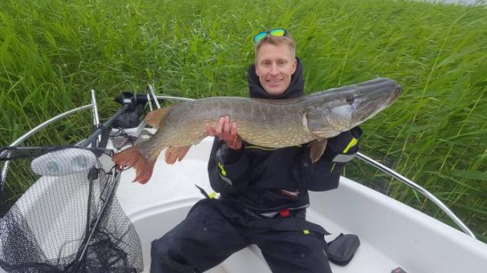 För en brutalt stark gädda på 11,7 kg och 117 cm högg över Daniels Ricky the Roach. Nytt PB med råge, och hans andra över 10 kg. Grattis! Gäddor över 10 kg är inte så vanliga i juli månad, och det här var den fjärde största som tagits i juli sedan Fisketoppens start år 1995.