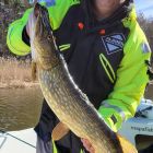 Igår blev det en kort tur med Jonti på eftermiddan. Hade inga mycket förhoppningar då vi skulle testa ett svårt vatten. Men alltid kul att komma ut på sånt också. Tre gäddor fick vi. Men alla var modell större. En på ca 4 kg, en på 6,6 kg till Jonti och sen precis på slutet så fick jag en madam på 7,8 kg och 100 cm. Ja vad ska man säga - vilken medelvikt!