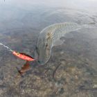 Har inte kunnat hålla mig mot kvällningen utan fiskat två dar i rad nu. Inga långa turer men oj så skönt att va igång med fisket igen. Igår onsdag passade jag på att få en timme fiske från land medans ena grabben var på fotbollsträning. Hade ett fint vak bara 20 meter ut men ingen kontakt där. Men fisk blev det på sista kastet. En gädda. Den bet över Gladsaxen, och efter att vi tittat på varann en stund fick den frihet åter.