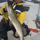 Nästa bättre pjäs är det Hasse som nyper, och den är på 4,5 kg. Och medan han är på gång så tar han en till. Det är en riktigt lång gädda på finfina 110 cm. Tyvärr var den nog på väg utför, modell äldre och avmagrad. För vågen visar "bara" på 6,6 kg. Men fint ändå, och en av Hasses längsta ever. Och dagens andra över 100 cm. Den tog på en Buster Jerk.