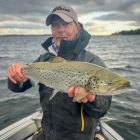 Havsöringar har det bara rapporterats in två stycken över 4 kg. Också det märkligt med tanke på att öringsåret som helhet gav mycket fisk. Till exempel så har Mats själv dragit 107 stycken! Nytt rekord. Den största på topplistan fick stamkunden Martin Säll under en guidad tur. Finfina 4,95 kg och 80 cm. Näststörsta som nånsin varit upp i båten.